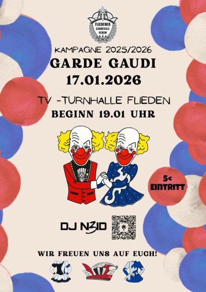 Die FCV Garde-Gaudi findet diese Kampagne am 17.01.2026 ab 19:01 Uhr in der TV-Turnhalle statt.