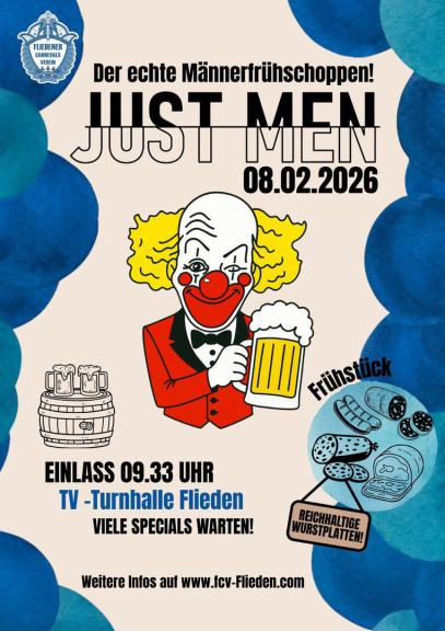 Unter dem Motto "Just Men - Der echte Männerfrühschoppen" heißen wir euch ab 09:33 Uhr in unserer Narhalla willkommen.