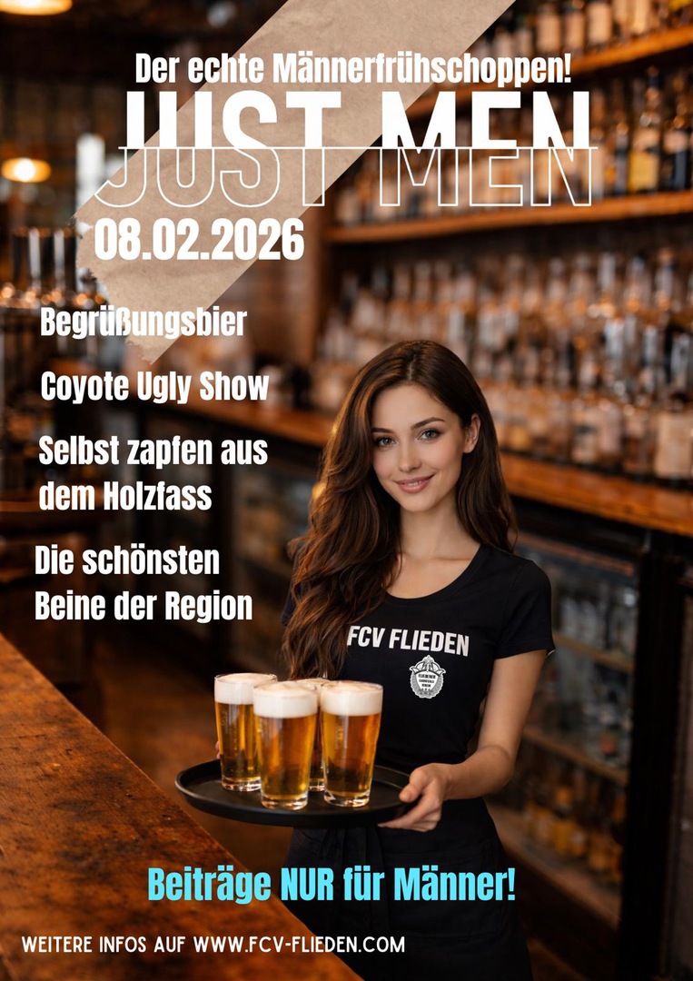Liebe Männer wir haben euren Hilfeschrei erhört und hier ist sie... Eure Veranstaltung. Lasst eure Ladies am 08.02.2026 zu Hause und feiert gemeinsam mit uns zusammen in der TV Turnhalle Flieden Karneval.