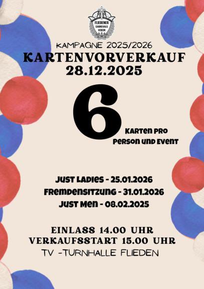 Nach dem Kartenvorverkauf am vergangenen Sonntag, den 28.12.2025 sind gibt es nun nur noch Karten für die Veranstaltung Just Men!